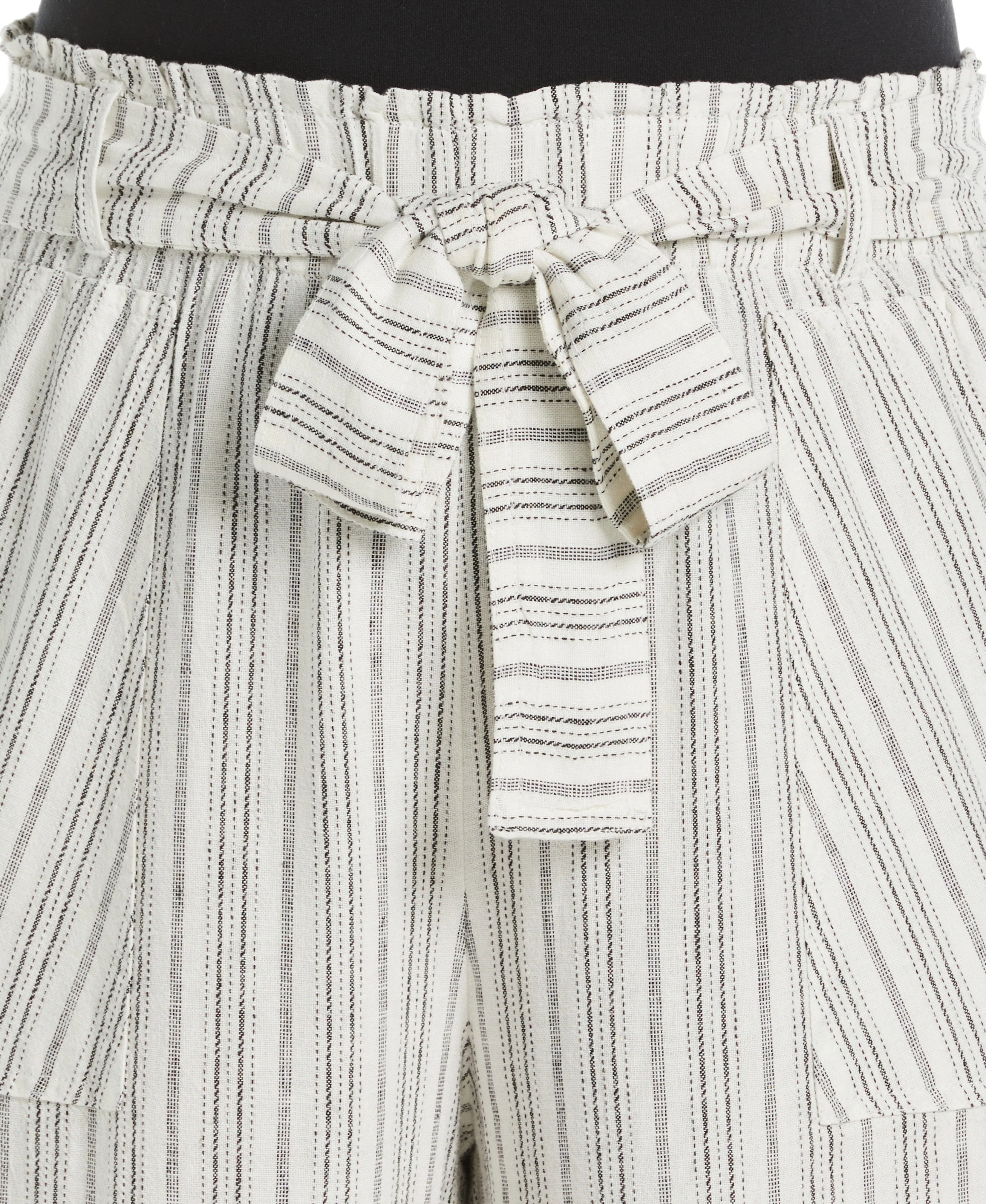 Plus Size Stripe Wide Leg Linen Blend Paper Bag Pant